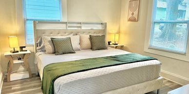 Rest easy in comfort. This home features two cozy bedrooms, each with a luxurious king bed and hybrid mattress for a restful night’s sleep. Every room comes equipped with a 4K smart TV and a closet with hangers, giving you both entertainment and convenience during your stay.