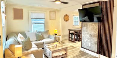 Relax & unwind. The living room combines contemporary style with simple elegance, creating the perfect spot to gather. Whether you’re enjoying board games with friends or settling in for a cozy movie night, this space makes you feel right at home.
