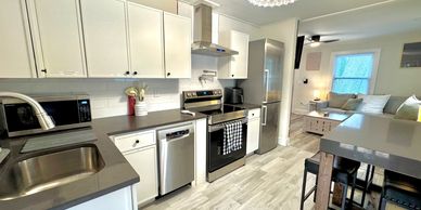 Small but mighty! Our kitchen is thoughtfully designed to include everything you need: a refrigerator, range, and dishwasher. The smart layout makes the most of the space, so you’ll have all the essentials to cook, prep, and enjoy meals with ease.